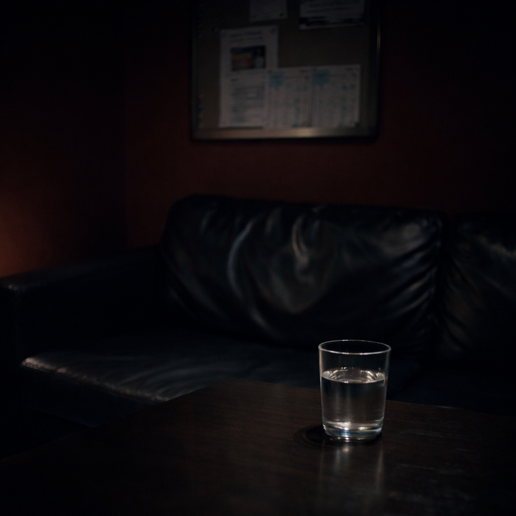 薄闇の中で、右手でコップを取ると
